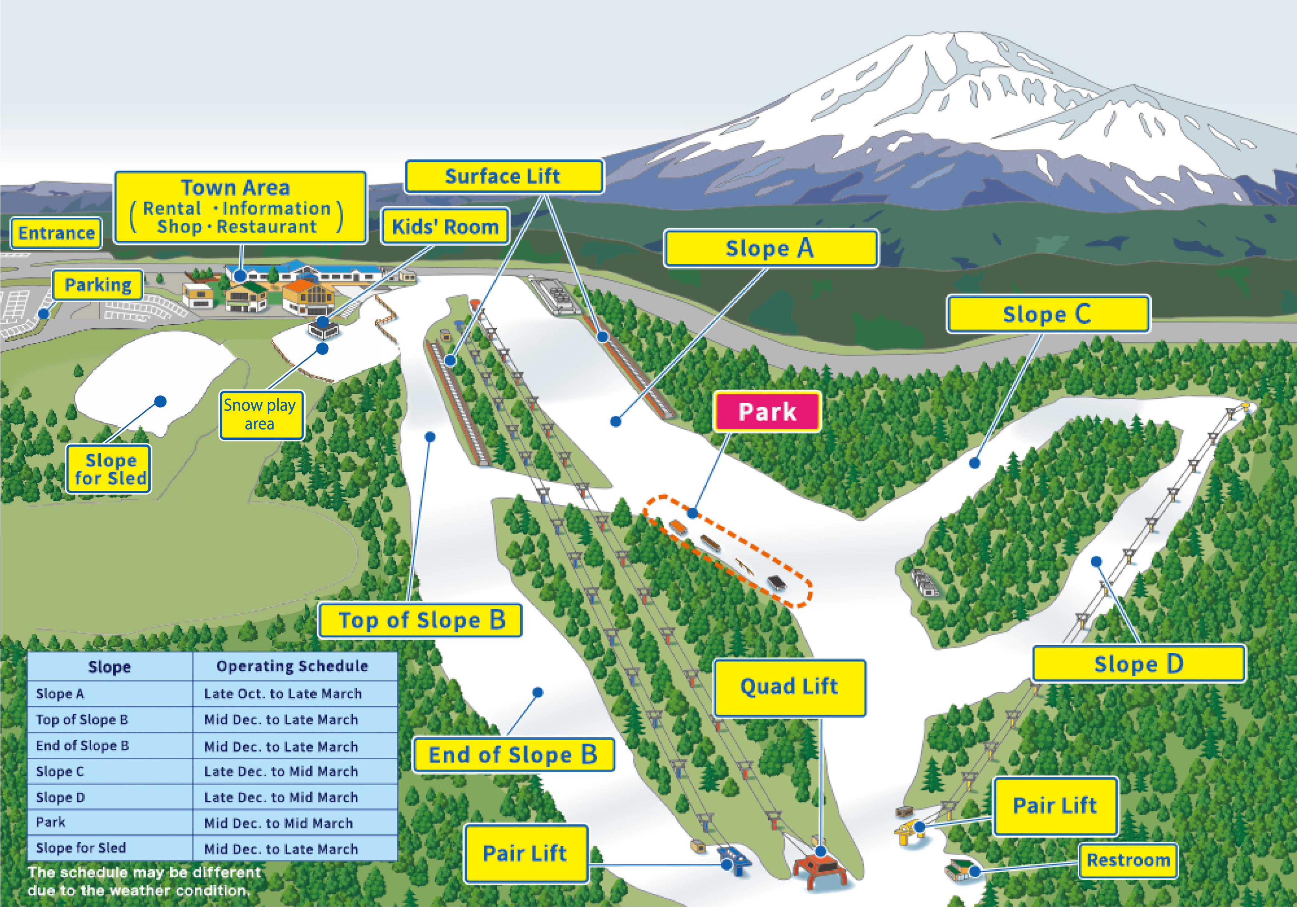 * Please refrain from sitting down on the slopes for the safety of yourself and others. This can cause accidental contact or collisions.
